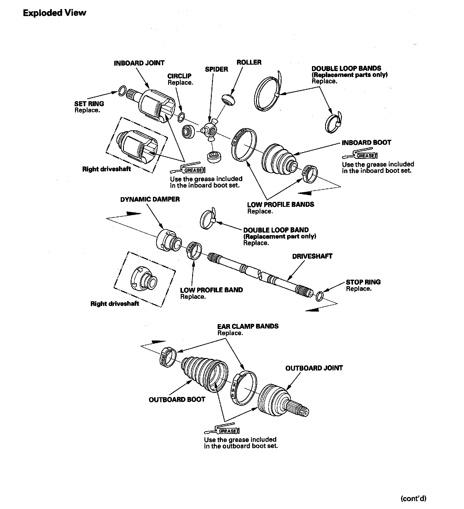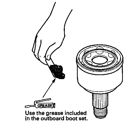 6. Pack the inboard joint with the joint grease included in the new inboard, boot set.