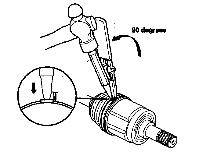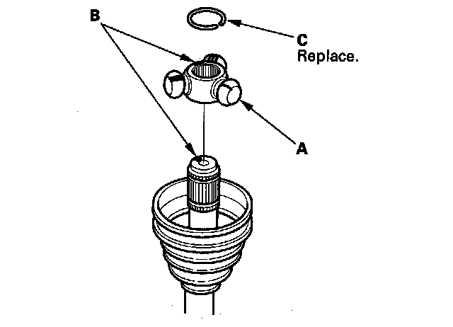 4. Install a new circlip (C) into the driveshaft groove. Always rotate the circlip in its groove to make sure it is fully seated.