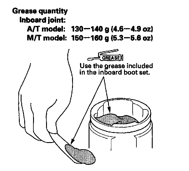 4. Pack about 35 g (1.2 oz) grease included in the new outboard boot set into the driveshaft hole in the outboard joint.