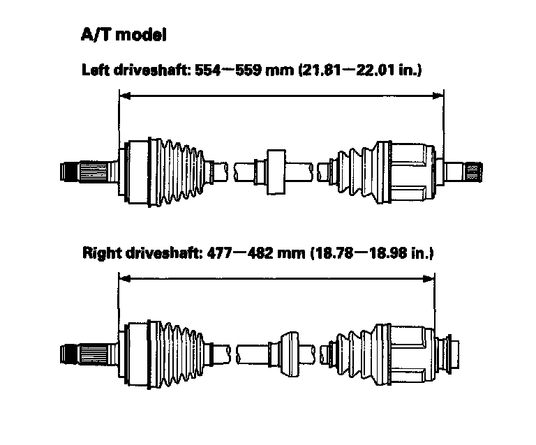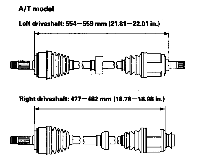 9. Adjust the length of the driveshafts to the figure as shown, then adjust the boots to halfway between full compression and full extension. Bleed excess air from the boots by inserting a flat-tipped screwdriver between the boot and the joint.