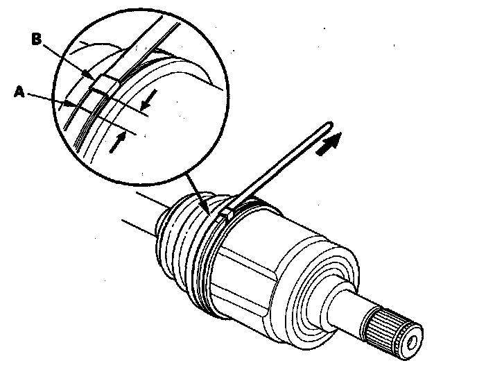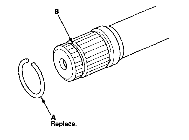 3. Install a new stop ring (A) in the driveshaft groove (B).