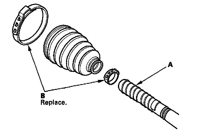 10. Fit the boot ends onto the driveshaft and the inboard joint, then install a new double loop band (A) onto the boot (B).