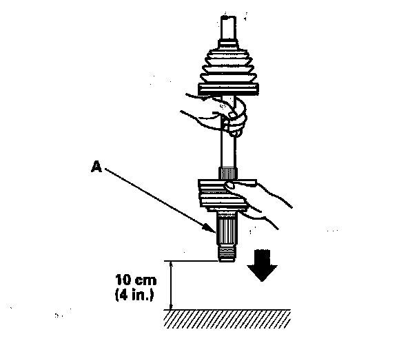 6. To completely seat the outboard joint, pick up the driveshaft and joint, and tap or hit them from a height of about 10 cm (4 in.) onto a hard surface.