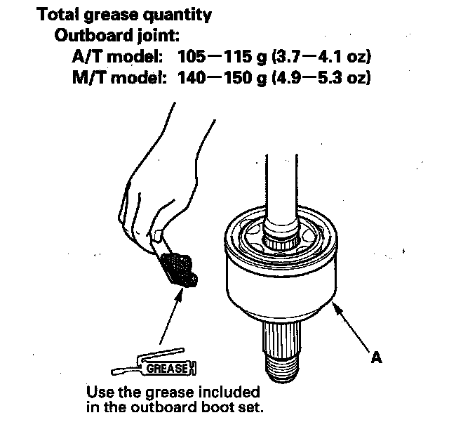 8. Pack the outboard joint (A) with the remaining joint grease included in the new outboard boot set.