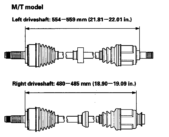 10. Adjust the length of the driveshafts to the figure as shown, then adjust the boots to halfway between full compression and full extension.