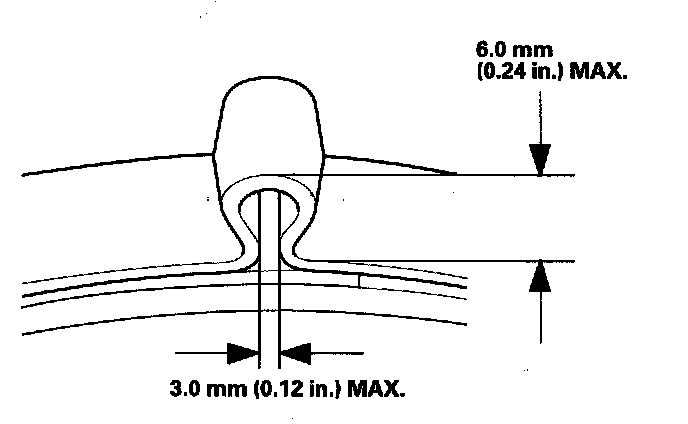 12. Mark position (A) on the band 10-14 mm (0.4-0.6 in.) from the clip (B).