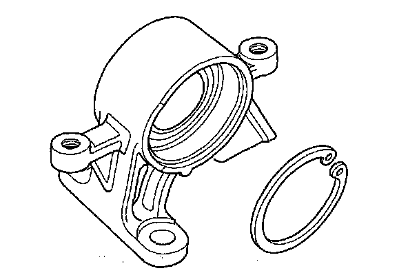 3. Press the intermediate shaft (A) out of the intermediate shaft bearing (B) using a press. Be careful not to damage the bearing support ring (C) on the intermediate shaft during disassembly.