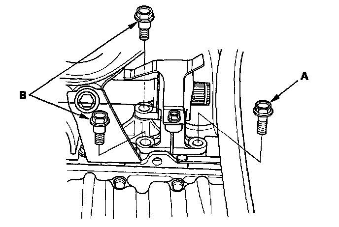 3. Remove the flange bolt (A) and two dowel bolts (B).