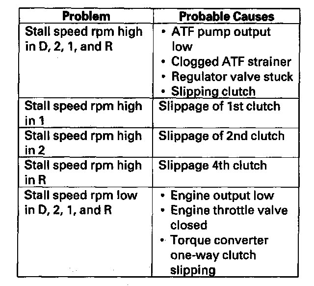 Stall Speed Test1. Make sure the transmission fluid is filled to the proper level.