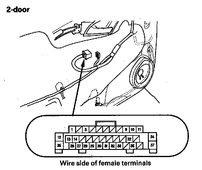 2. Test the motor in each direction by connecting battery power and ground to the power window master switch 37P connector (A) according to the table.