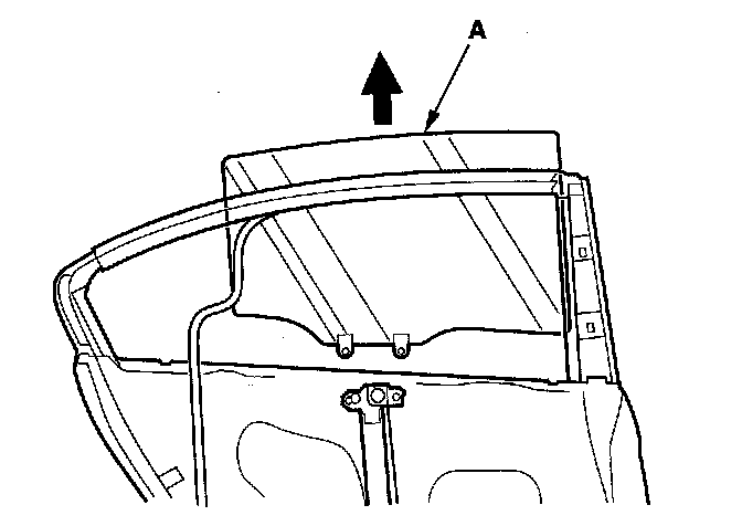 9. Remove the quarter glass (A). Take care not to damage the outer weatherstrip (B).