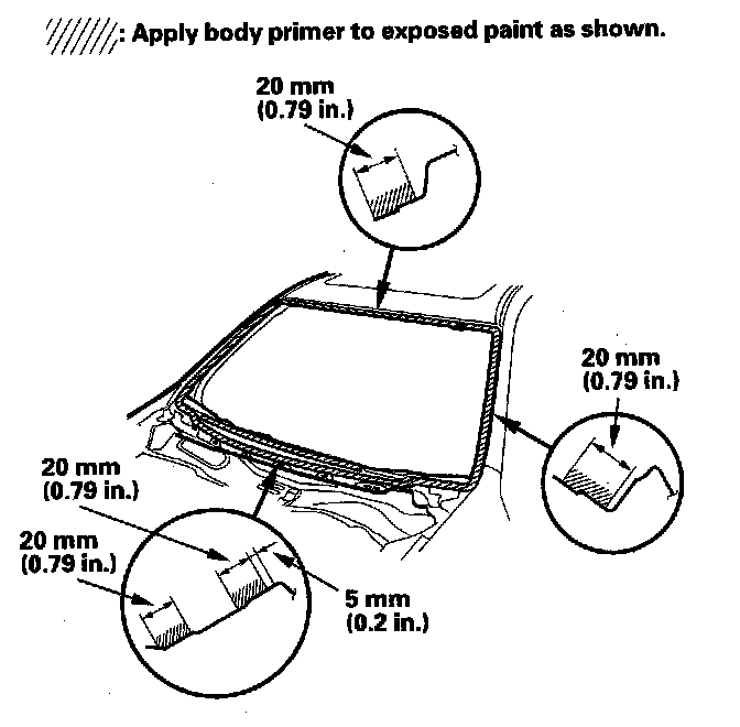 - Never touch the primed surfaces with your hands. If you do, the adhesive may not bond to the windshield properly, causing a leak after the windshield is installed.