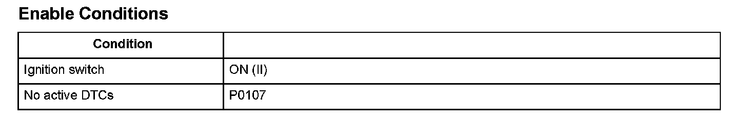 The manifold absolute pressure (MAP) sensor senses manifold absolute pressure (vacuum) and converts it into electrical signals. The MAP sensor outputs low signal voltage at high-vacuum (throttle valve closed) and high signal voltage at low-vacuum (throttle valve wide open). If a signal voltage from the MAP sensor is a set value or more, the engine control module (ECM)/powertrain control module (PCM) detects a malfunction and a DTC is stored.