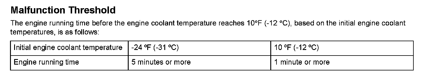 When a malfunction is detected during the first drive cycle with the ECT and IAT at engine start-up within the specified temperature range, a Temporary DTC is stored in the ECM/PCM memory. If the malfunction recurs during the next (second) drive cycle with the ECT and IAT at engine start-up within the specified temperature range, the MIL comes on and the DTC and the freeze frame data are stored.