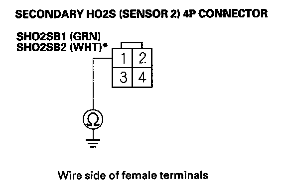 12. Check for continuity between secondary HO2S (Sensor 2) 4P connector terminal No. 1 and body ground.