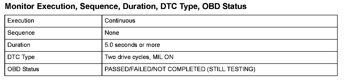 Monitor Execution, Sequence, Duration, DTC Type, OBD Status