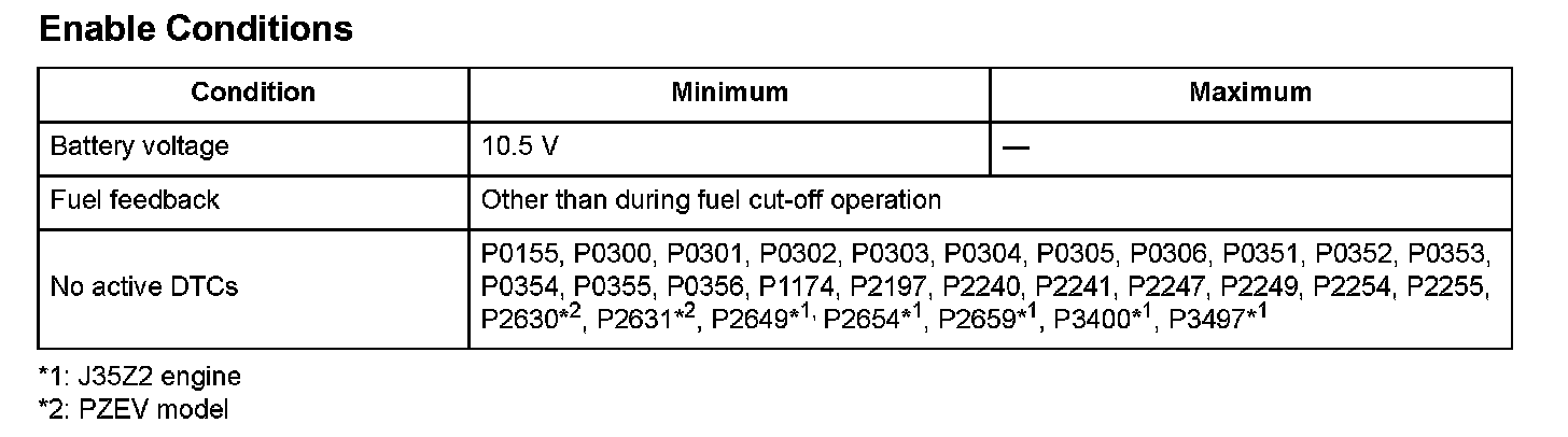 1. When the front A/F sensor does not activate within a set time after the front A/F sensor heater starts to warm up (with high front A/F sensor internal resistance), a malfunction of the front A/F sensor heater is detected, and a DTC is stored.