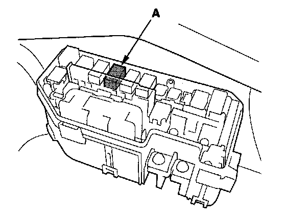 7. Remove the PGM-FI subrelay (A) from the under-hood fuse/relay box.