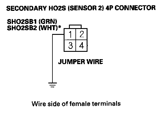 12. Connect secondary HO2S (Sensor 2) 4P connector terminal No. 1 to body ground with a jumper wire.