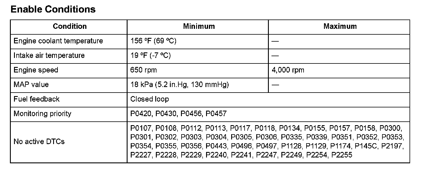 Monitor Execution, Sequence, Duration, DTC Type, OBD Status