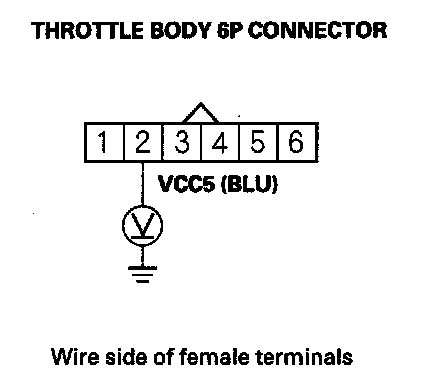 10. Measure the voltage between throttle body 6P connector terminal No. 2 and body ground.