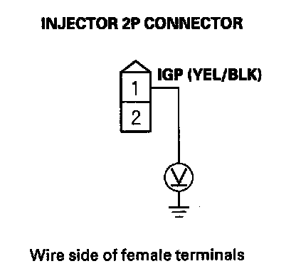 28. Measure the voltage between injector 2P connector terminal No. 1 and body ground.