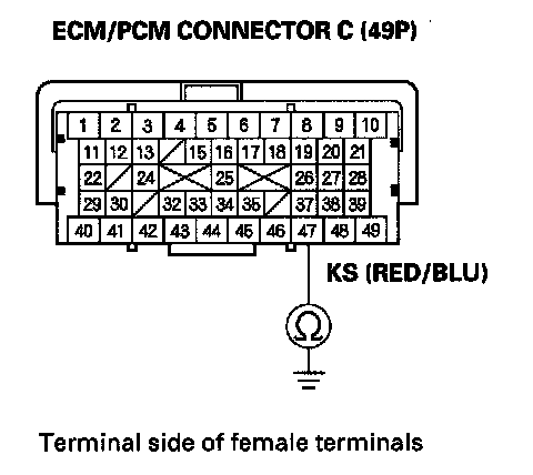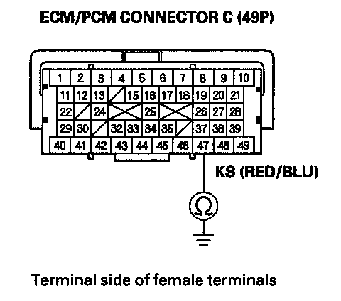 10. Check for continuity between ECM/PCM connector terminal C47 and body ground.