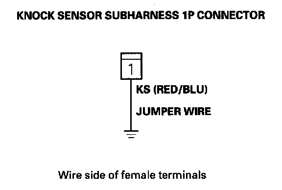 11. Connect the knock sensor subharness 1P connector terminal to body ground with a jumper wire.