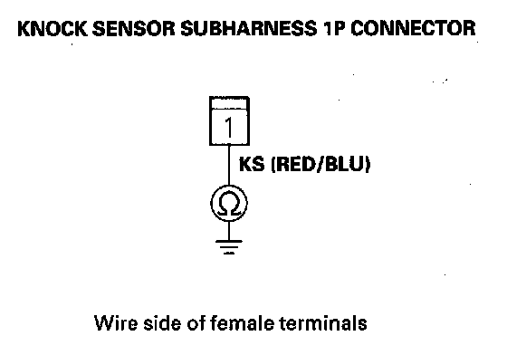 16. Check for continuity between the knock sensor subharness 1P connector terminal and body ground.