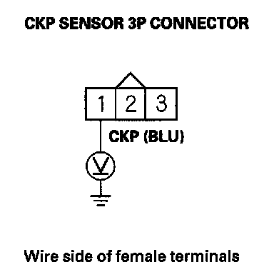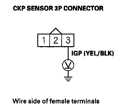 8. Measure the voltage between CKP sensor 3P connector terminal No. 3 and body ground.