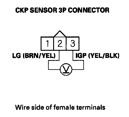 10. Measure the voltage between CKP sensor 3P connector terminals No. 2 and No. 3.