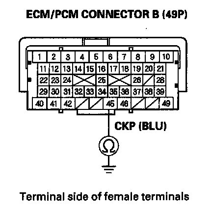 15. Connect CKP sensor 3P connector terminal No. 1 to body ground with a jumper wire.