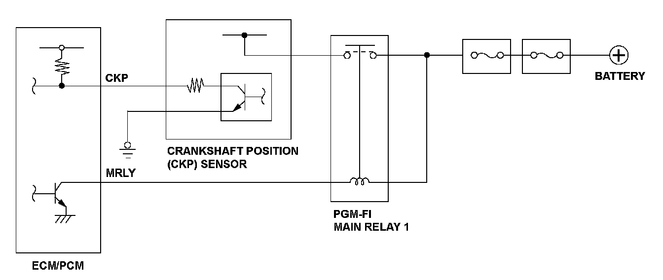 The crankshaft position (CKP) sensor consists of a rotor and a semiconductor that detects rotor position. When the engine starts, the rotor turns and the magnetic flux in the semiconductor device changes. The changes of magnetic flux are converted into pulsing signals to the engine control module (ECM)/powertrain control module (PCM). The CKP sensor detects injection/ignition timing for each cylinder and engine speed. If an abnormal amount of pulsing signals from the CKP sensor are detected, a malfunction is detected and a DTC is stored.
