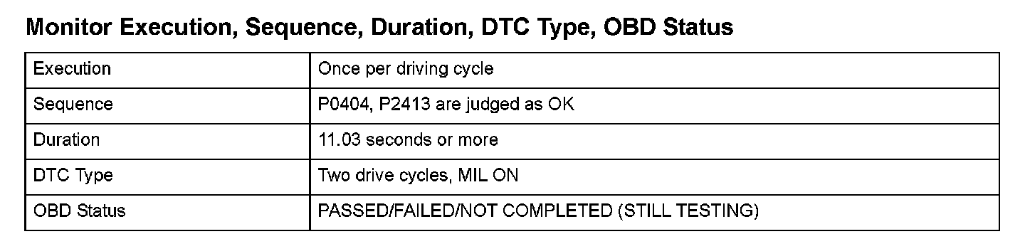 Monitor Execution, Sequence, Duration, DTC Type, OBD Status