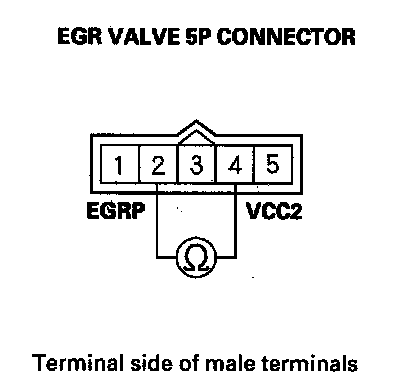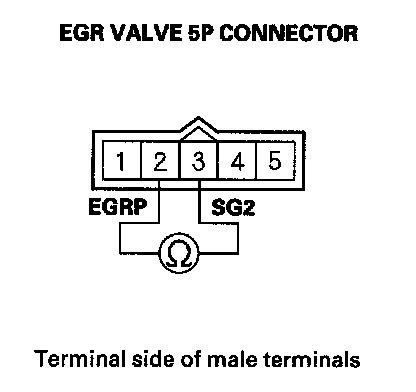 7. At the EGR valve side, measure the resistance between EGR valve 5P connector terminals No. 2 and No. 3.