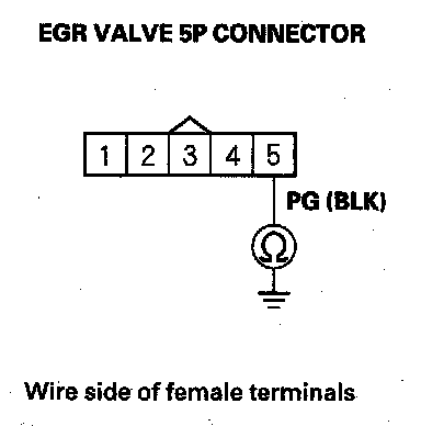 9. Check for continuity between EGR valve 5P connector terminal No. 5 and body ground.