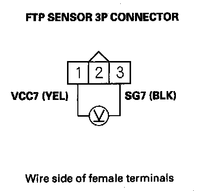 15. Measure the voltage between FTP sensor 3P connector terminals No. 1 and No. 3.