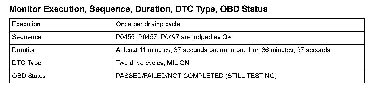 Monitor Execution, Sequence, Duration, DTC Type, OBD Status