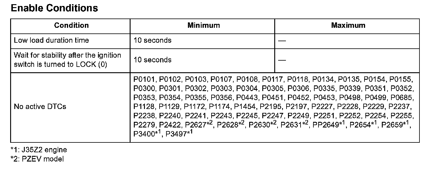 The output from the EVAP canister purge valve is 0.2 kPa (0.07 in.Hg, 2 mmHg) or more for at least 10.0 seconds.