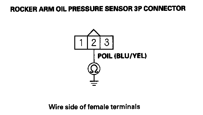 11. Check for continuity between rocker arm oil pressure sensor 3P connector terminal No. 2 and body ground.