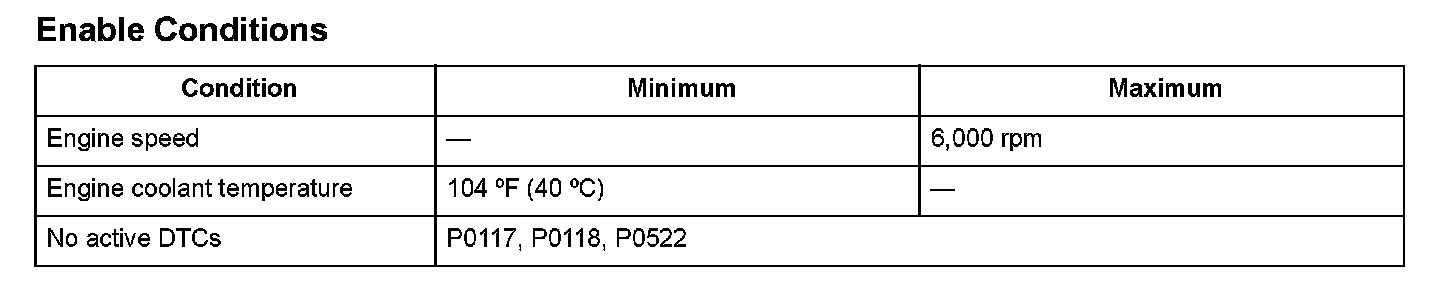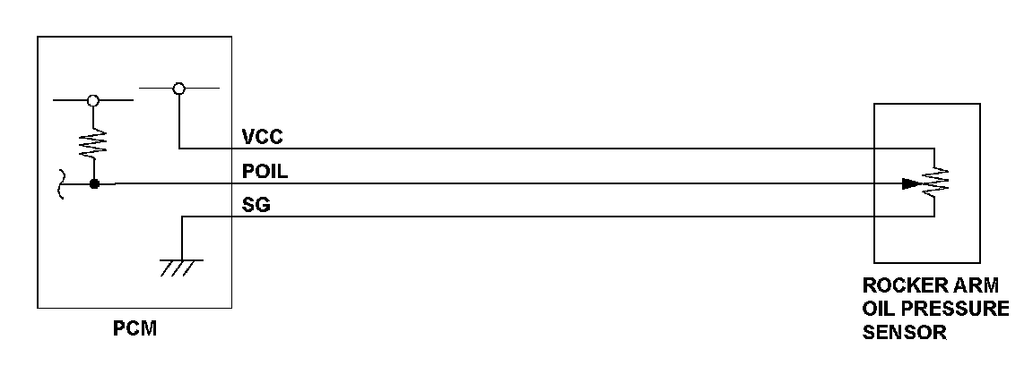 The rocker arm oil pressure sensor detects the engine oil pressure of the variable cylinder management (VCM) system. When the voltage from the rocker arm oil pressure sensor is a set value or more for a specified time, the powertrain control module (PCM) detects a malfunction and a DTC is stored.