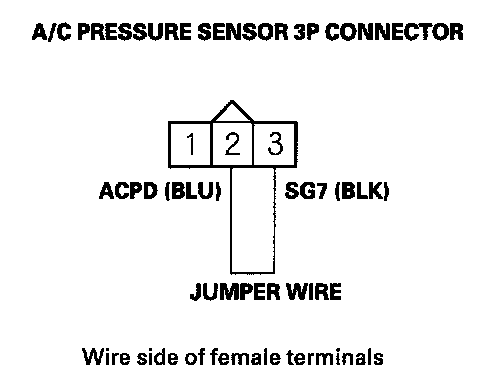 11. Remove the jumper wire from the A/C pressure sensor 3P connector.
