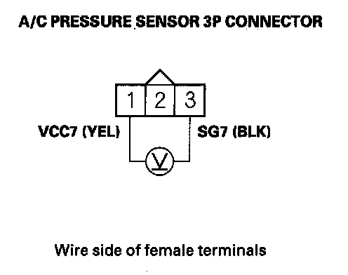 13. Measure the voltage between A/C pressure sensor 3P connector terminal No. 1 and No. 3.