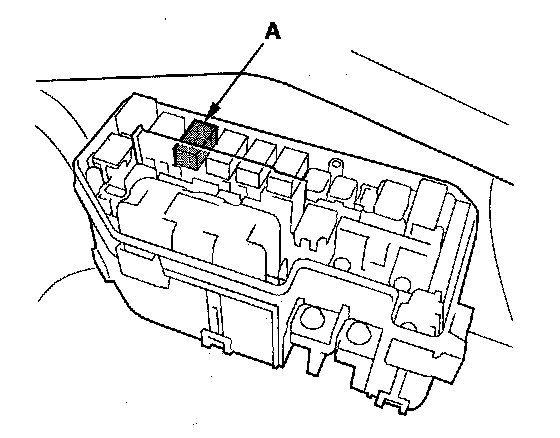 16. Remove PGM-FI main relay 1 (FI MAIN) (A) from the under-hood fuse/relay box.