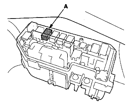 11. Remove PGM-FI main relay 1 (FI MAIN) (A) from the under-hood fuse/relay box.