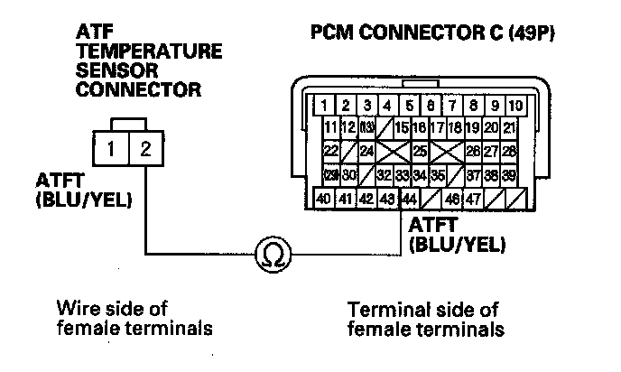 10. Check for continuity between PCM connector terminal C33 and ATF temperature sensor connector terminal No. 2.