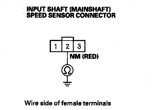 13. Measure the voltage between input shaft (mainshaft) speed sensor connector terminal No. 1 and body ground.