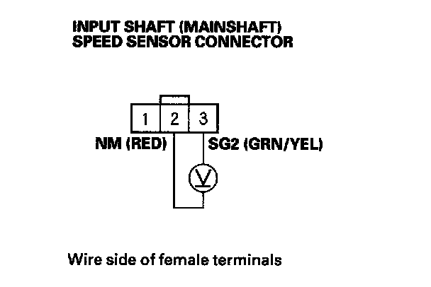 24. Measure the voltage between input shaft (mainshaft) speed sensor connector terminals No. 2 and No. 3.
