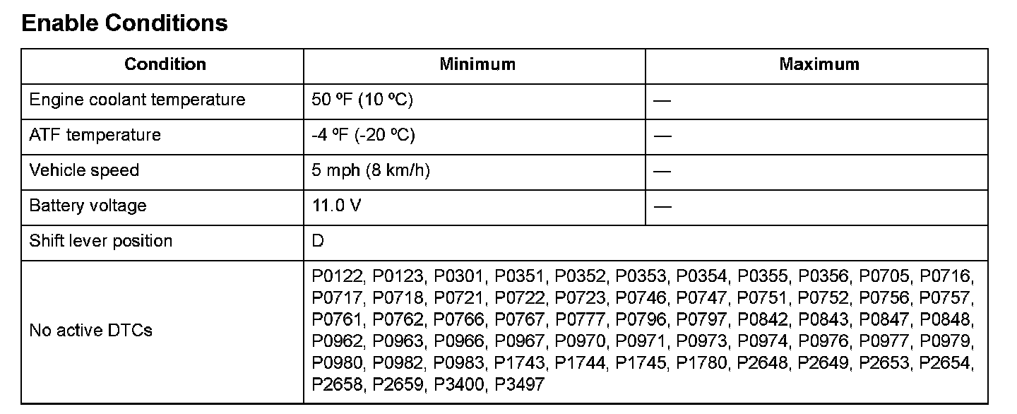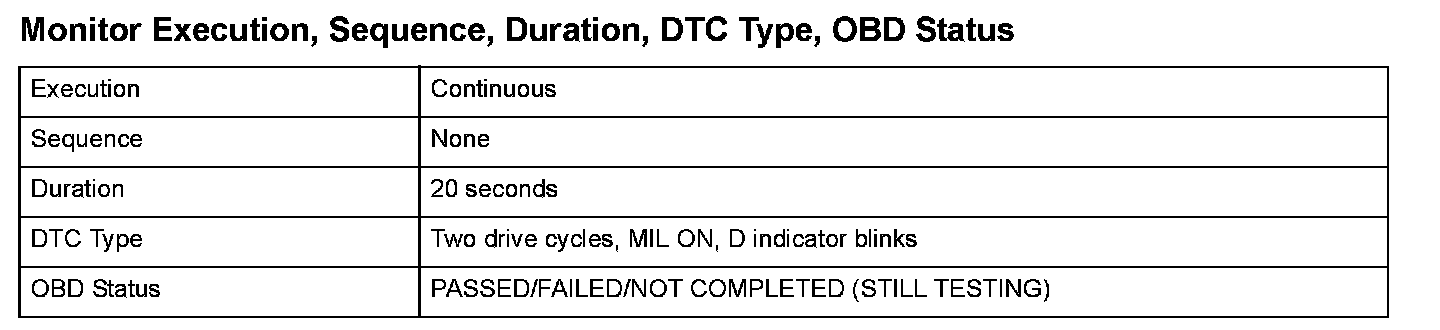 Monitor Execution, Sequence, Duration, DTC Type, OBD Status