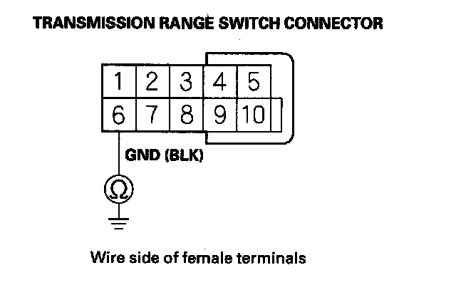 5. Check for continuity between transmission range switch connector terminal No. 6 and body ground.